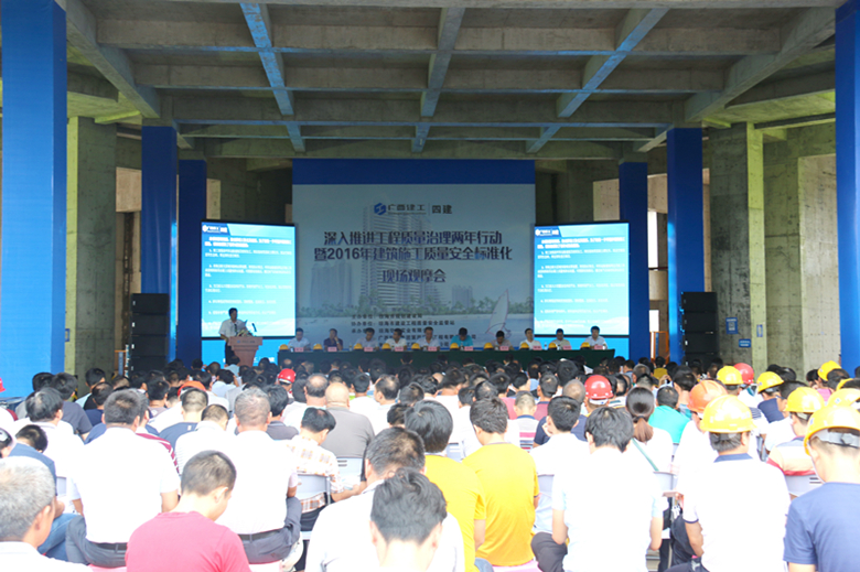 8月4日上午,公司承建的海南博鳌金湾C1-1#楼项目施工现场井然有序,现场一片沸腾,海南省琼海市深入推进工程质量治理两年行动暨2016年建筑施工质量安全标准化观摩会在此隆重举行。海南省住建厅、琼海市规建局、安监局有关负责人,全市在建项目的建设单位、施工单位、监理单位代表500多人参与了现场观摩活动。在观摩会上和观摩现场,大家一致认为广西建工四建博鳌金湾项目为琼海市乃至海南省建筑工程质量和安全生产、文明施工提供了高标准建设样板,值得深入学习和推广。
