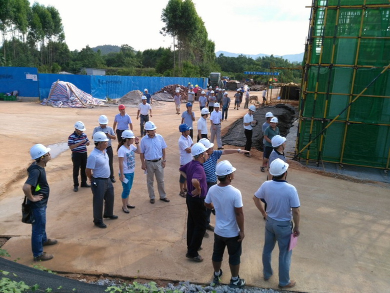 现场调研诸位领导对广西建工四建的管理以及项目部的各项工作给予了充分的肯定和高度的评价,同时对检查中存在的问题也进行了指导。李副局长在肯定项目部工作的同时也提出二点希望,一是希望广西建工四建把安全工作放在首位,继续做好国企大公司的表率作用,特别注意针对近期汛期比较容易发生事故的情况。二是加强安全检查,避免小事故杜绝发生大事故,认真贯彻执行自治区建设厅有关安全生产文件精神并做好日常安全检查。
