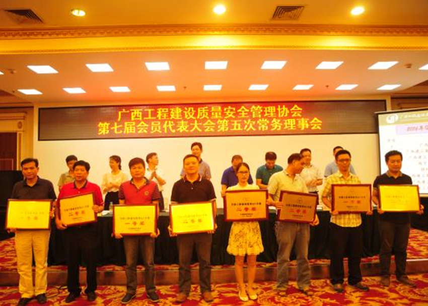 会上,广西工程建设质量安全管理协会为在2016年优质工程、文明工地和QC活动等评选中成绩突出的单位举行了颁奖仪式。公司2016年在QC方面取得的成绩得到了协会领导的一致肯定,荣获广西工程建设质量安全管理协会颁发的“全国工程建设优秀QC小组一等奖”,公司副总经理、总工程师李友胜代表公司上台领奖。此外,公司获全国工程建设优秀QC小组一等奖的QC小组——广播电影电视中心工程项目QC小组,被选取在会议上介绍经验并作成果演示。