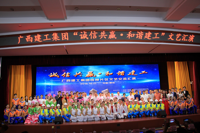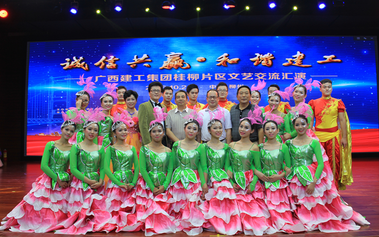 进一步提振士气、振奋精神,为企业发展凝聚力量,展现广西建工集团深厚的企业文化内涵,集团公司于10月21日在五公司柳州总部隆重举行桂柳片区“诚信共赢,和谐建工”文艺交流汇演,公司精心编排的3个节目参加了本次文艺汇演。集团公司党委副书记、工会主席陈家坚等集团领导,集团桂柳片各子公司领导到场观看了演出,公司副总经理蒋建成,公司工会、相关分公司人员也观看了演出。