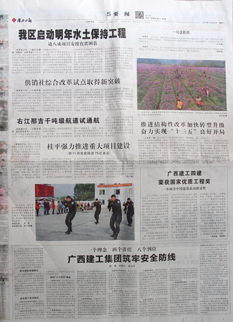 12月29日,《广西日报》要闻版,文字报道了公司荣获国家优质工程奖的新闻,现将全文刊载如下: