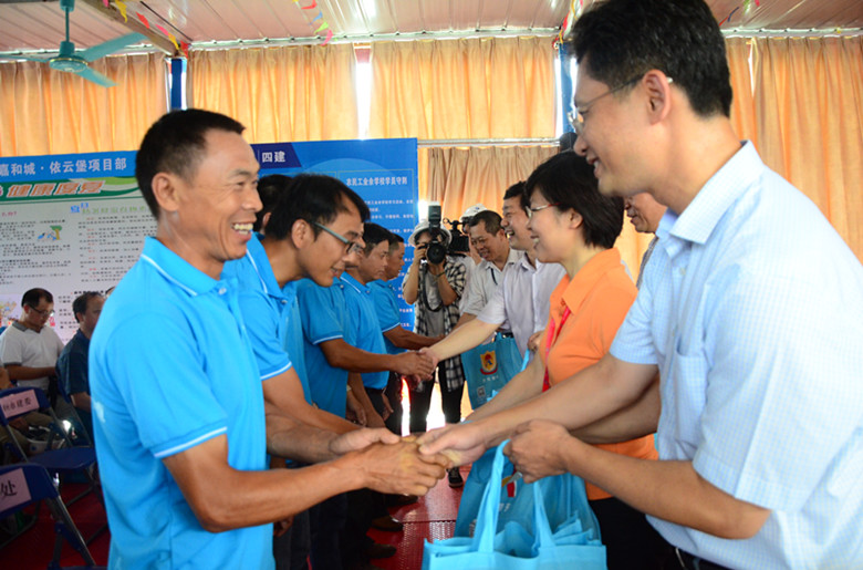 自治区建设厅副厅长杨绿峰来到嘉和城·依云堡项目施工现场指导并给农民工兄弟上安全教育课,由广西质量安全总站站长顾胜主持。一个小时的安全生产教育课在严肃的气氛中结束后,杨副厅长分析了近几年广西安全生产事故的严峻形势,列举了3·26外架坍塌事故和8·19中毒事件对社会的深刻影响,告诫在座的各地级市建委、住建局和建筑企业主管代表,充分认识安全生产的重要意义,杜绝安全生产事故的发生;提醒参培的50位农民工兄弟代表,时刻警惕安全事故,确保人身安全。杨副厅长还在课上进行安全生产知识抢答活动并亲自给农民工兄弟送上安全防护用品。